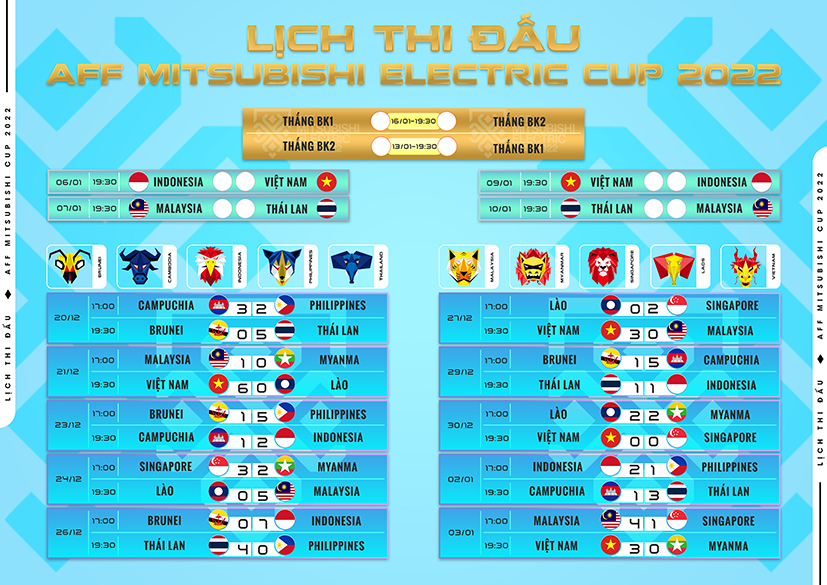 Theo lịch thi đấu, giải sẽ diễn ra từ ngày 20 tháng 12 đến ngày 16 tháng 1 năm 2023. Giai đoạn vòng bảng diễn ra từ 20 tháng 12 đến 03 tháng 01 năm 2023, bốn trận bán kết diễn ra vào các ngày 6 đến 10 tháng 01 năm 2023 và hai trận chung kết diễn ra vào ngày 13 và 16 tháng 01 năm 2023.