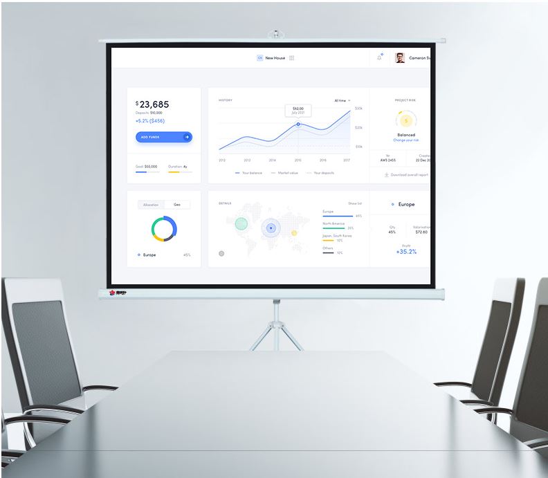 Màn chiếu 3 chân Dalite tích hợp với các model máy chiếu trên thị trường. Đáp ứng đa nhu cầu trình chiếu hội họp văn phòng, sự kiện trong nhà, ngoài trời, cafe bóng đá, hoặc khách hàng có thể mang đi công tác xa 1 cách rất dễ dàng.