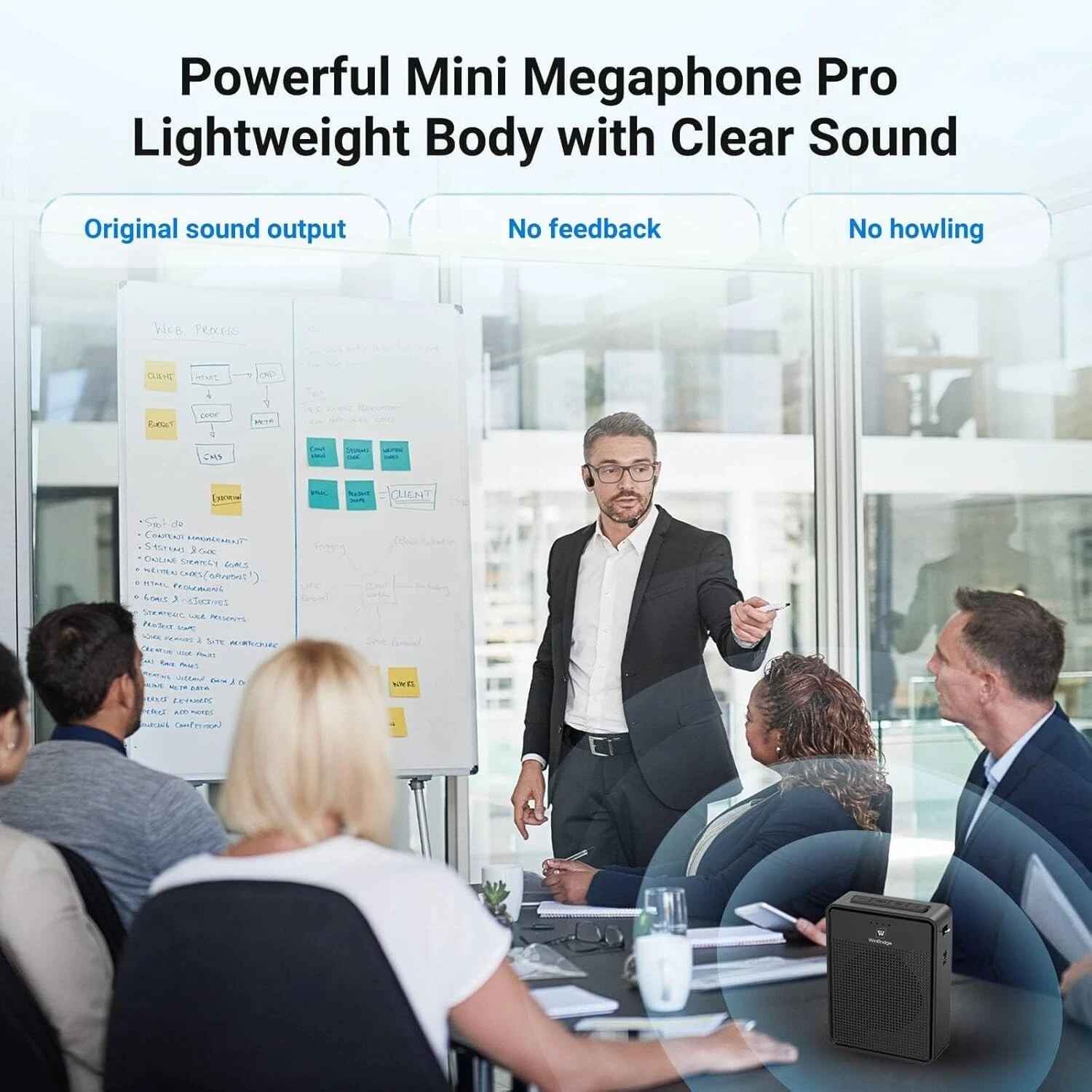 Bạn chỉ cần đặt loa trên bàn hoặc bục giảng, bật máy lên và dạy – không cần đeo, không vướng víu.